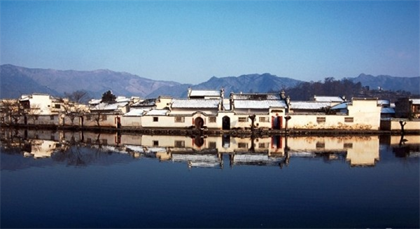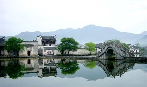 宏村被譽為“中國畫里的鄉(xiāng)村”,聯(lián)合國專家稱贊它為“舉世無雙的小城鎮(zhèn)水街景觀”。因為它背倚黃山余脈羊棧嶺、雷崗山等,地勢較高,有時云蒸霞蔚,如濃墨重彩,有時似潑墨寫意,四周山色與粉墻青瓦倒映湖中,人、古建筑與大自然融為一體,好似一幅徐徐展開的山水畫卷。