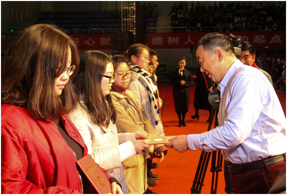 儲董事長為獲獎學(xué)生頒獎